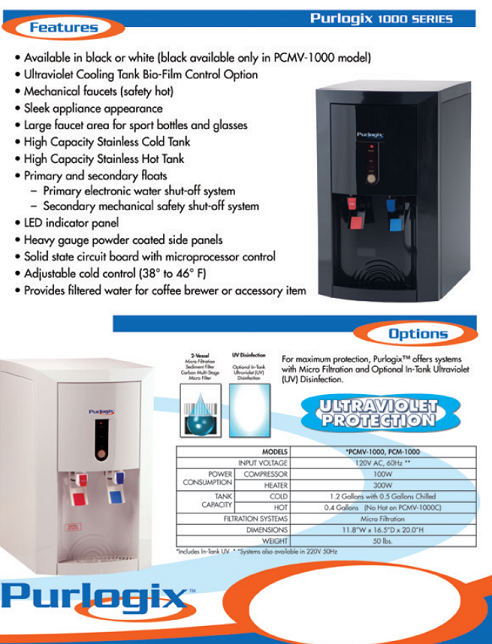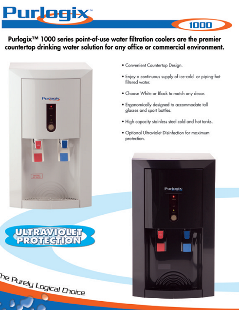 These are our Purlogix 1000 series point-of use water filtration coolers.
